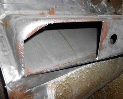 Die Karosserie wird durch Erneuerung aller korrodierten Teile in den Neuzustand versetzt (Beplankung, Radhäuser, Schwellerbereich, Fahrzeugboden, Pedalböden, Träger etc.). Der Unterboden wird auf Wunsch vorher trockeneisgestrahlt.